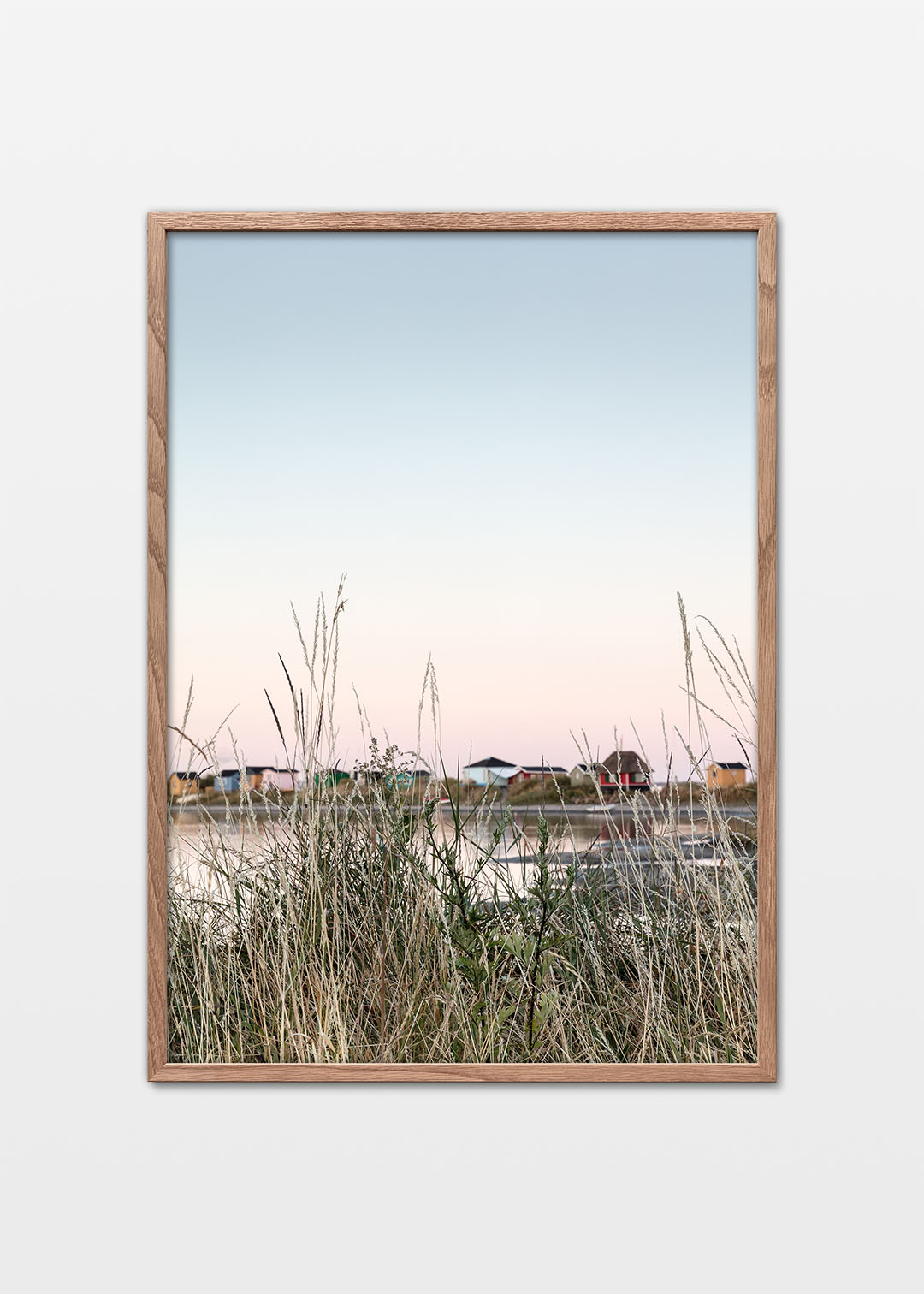 Plakaten er printet på høj kvalitets papir, hvilket sikrer, at alle detaljer og farver bliver levende gengivet. Det harmoniske motiv med badehusene og det bløde lys gør denne plakat til et smukt fokuspunkt, der passer perfekt ind i både moderne og klassiske indretninger.