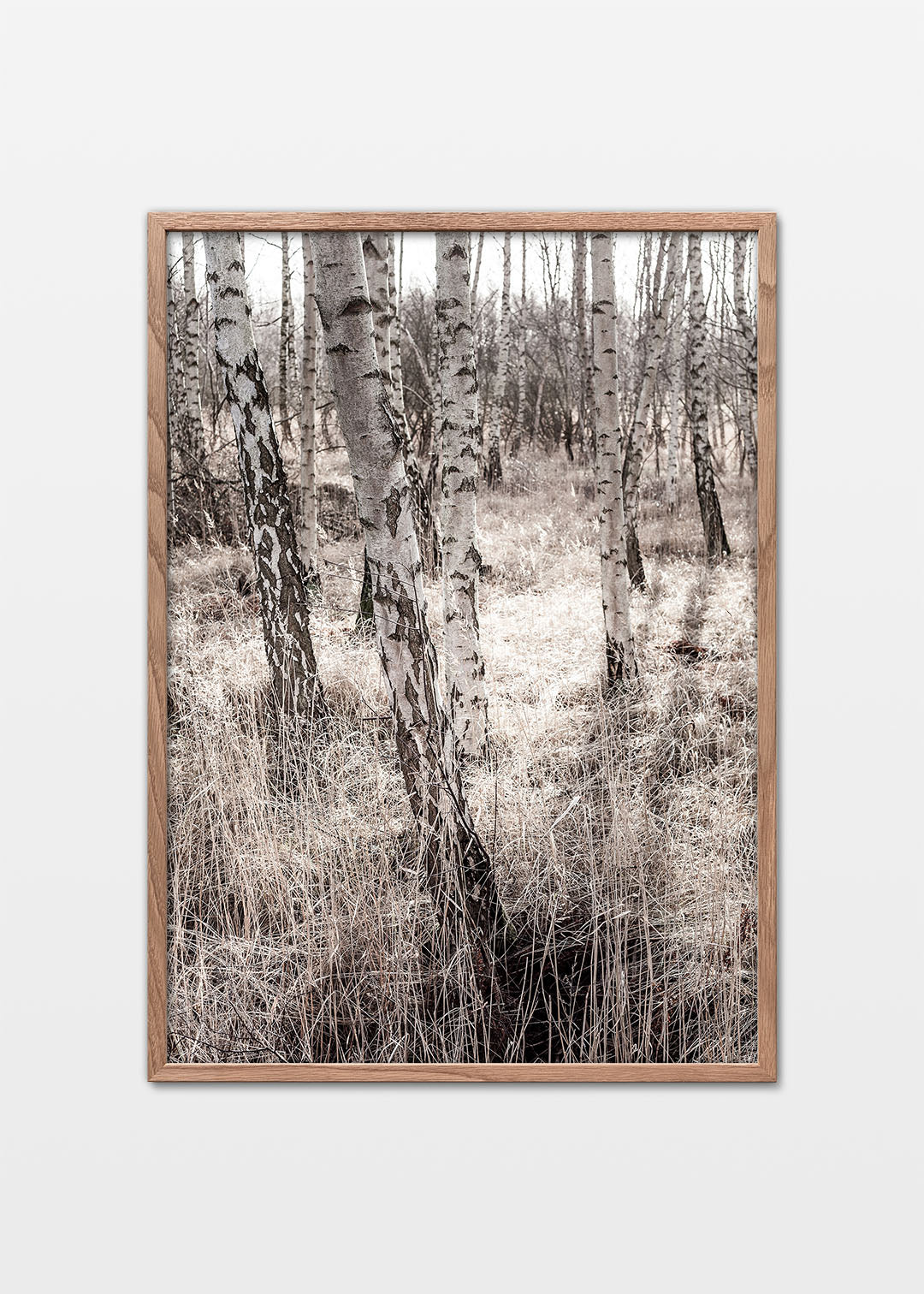 Birkeskov plakat af skoven på Kalvebod Fælled. Fælleden er et af de nærmeste naturområder, hvis du bor i København. Fotografiet er taget i det tidlige forår på en solskinsdag, hvor solen skinner gennem de nøgne birkestammer. Plakaten er et klassisk og grafisk fotografi, der indfanger den enkle skønhed af nordisk natur. De lyse birkestammer skaber en harmonisk komposition, der passer perfekt ind i en skandinavisk indretning.