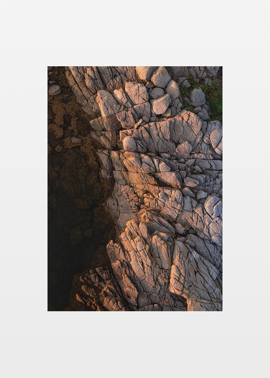 Bornholm Kyst 3 fremhæver et smukt dronebillede af Bornholms klipper. Dette unikke motiv fanger landskabets dramatiske skønhed og naturens styrke, hvilket gør det til en ideel plakat for dem, der ønsker at føle sig tættere på naturen og bringe ro ind i deres hjem.