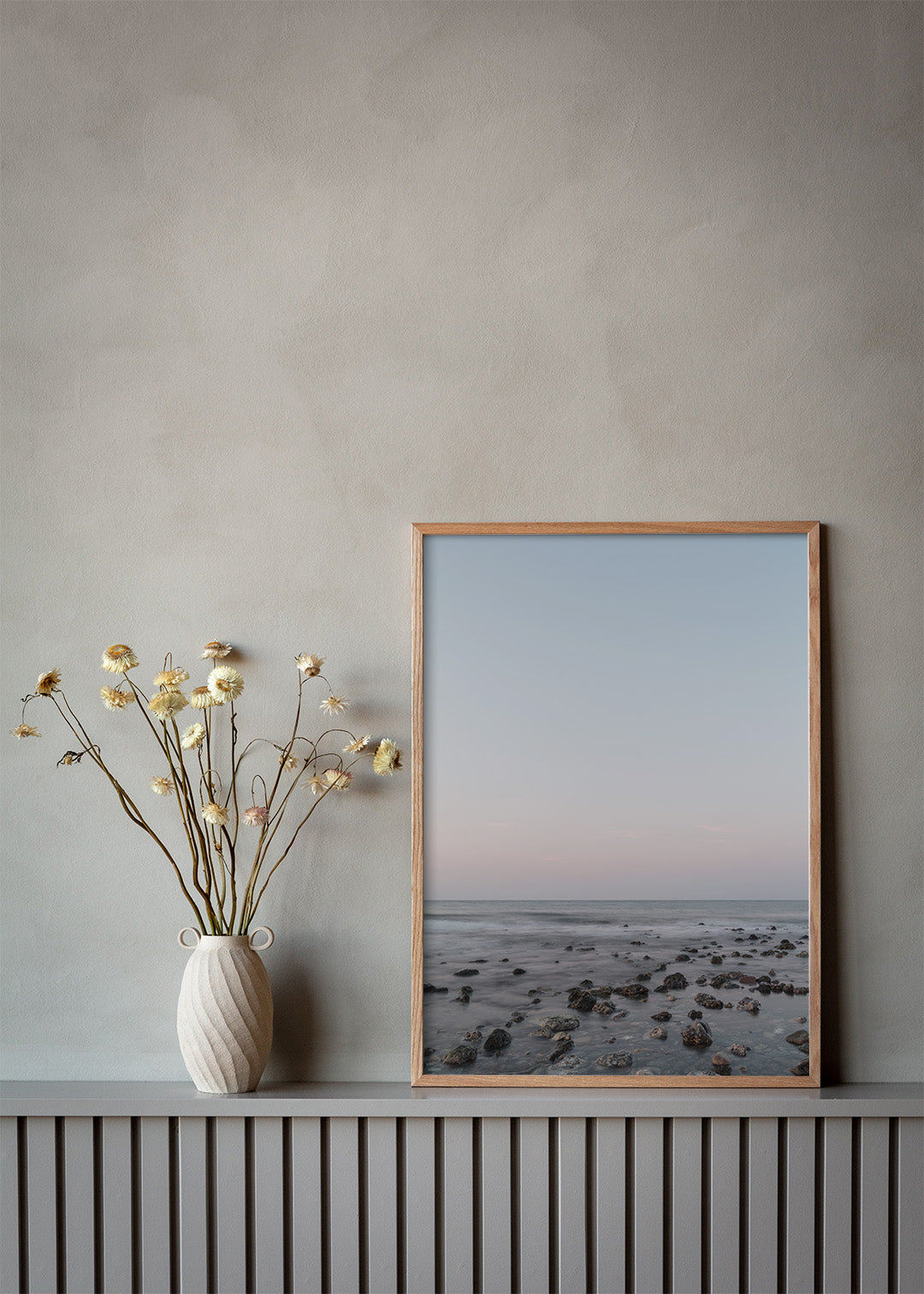Plakaten er printet på høj kvalitets papir, hvilket sikrer, at alle detaljer og nuancer bliver levende gengivet. De afdæmpede blå farver skaber en afslappende atmosfære, som passer perfekt ind i både moderne og klassiske hjem. Med denne plakat kan du bringe et stykke af den danske vestkyst ind i dit hjem og lade naturens skønhed inspirere og skabe ro.