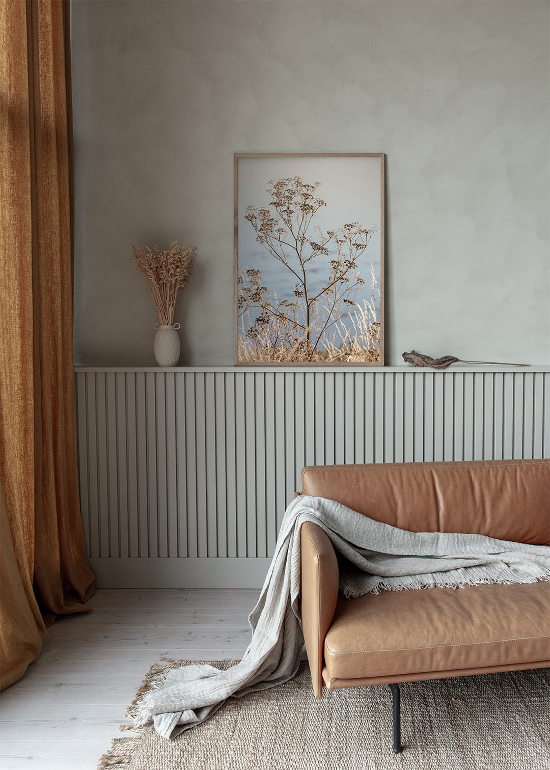 Denne plakat er ideel til dig, der ønsker at skabe en rolig og naturnær stemning i din indretning. Med sin enkle komposition og de gyldne farvetoner passer plakaten godt ind i både moderne og klassiske hjem, hvor den kan hænge som et stilfuldt element i stuen, soveværelset eller på kontoret. Den afdæmpede farvepalet og det detaljerede motiv skaber en visuel oase, der bringer tankerne mod Danmarks smukke natur.