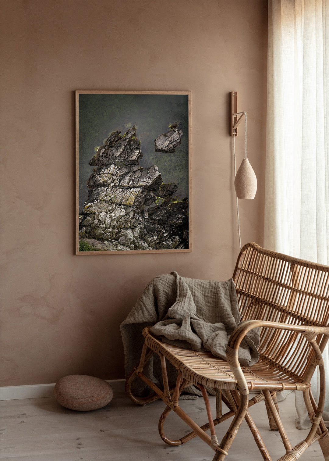 Denne plakat inviterer til at drømme sig væk og finde ro i de mange detaljer, som de dramatiske klipper byder på. Vores droneplakat fra Helligdomsklipperne er ideel til dig, der ønsker at bringe naturens storslåede skønhed ind i hjemmet. Hæng den op i stuen, på kontoret eller i sommerhuset, og lad den inspirere til nye eventyr i den danske natur.