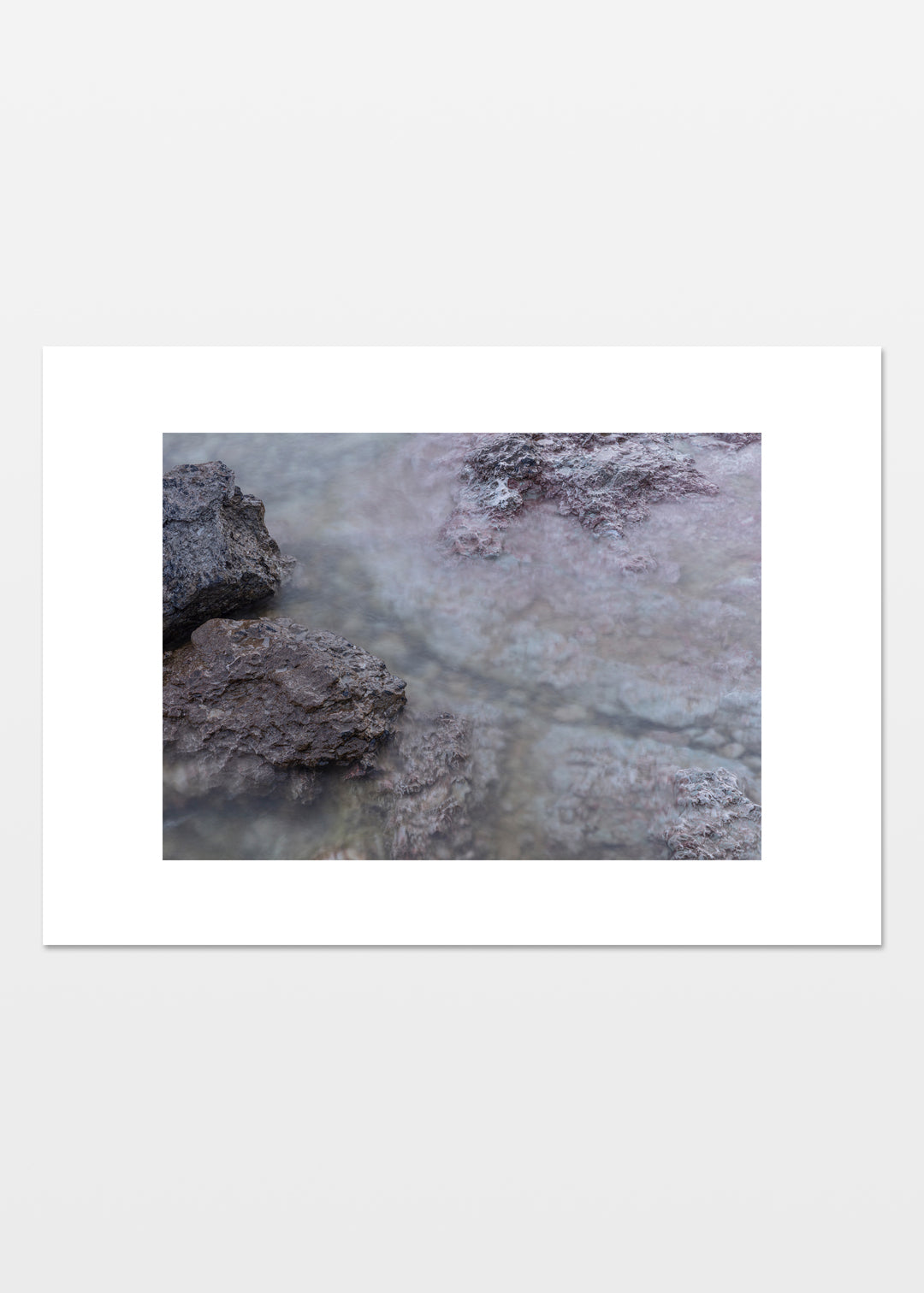 Kysten ved Gotland rummer fascinerende klippeformationer, hvor havets bevægelser og tidens tand har skabt unikke mønstre og teksturer. Denne plakat viser et nærbillede af klipperne i havkanten, hvor vandets blide strøm fremhæver stenens former og farver på smukkeste vis.