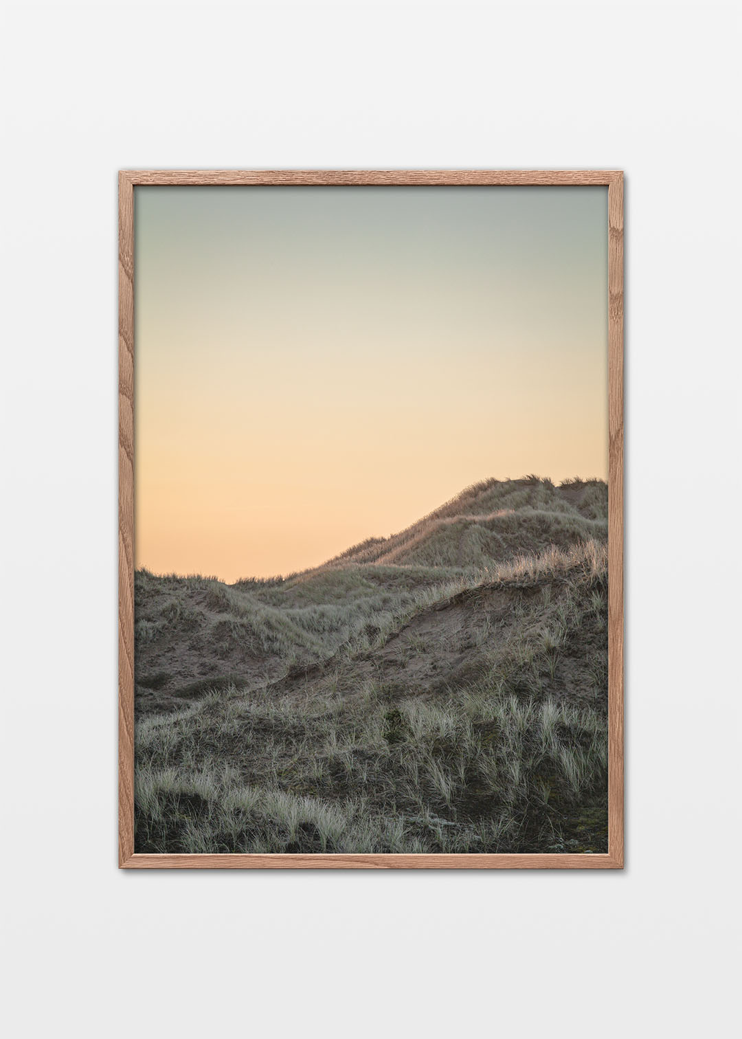 De lyse sandklitter omkring Skagen rejser sig mod himlen med marehalmens grønne strå i vinden. Motivet indfanger det særlige nordlige lys og den åbne natur ved Danmarks nordspids.