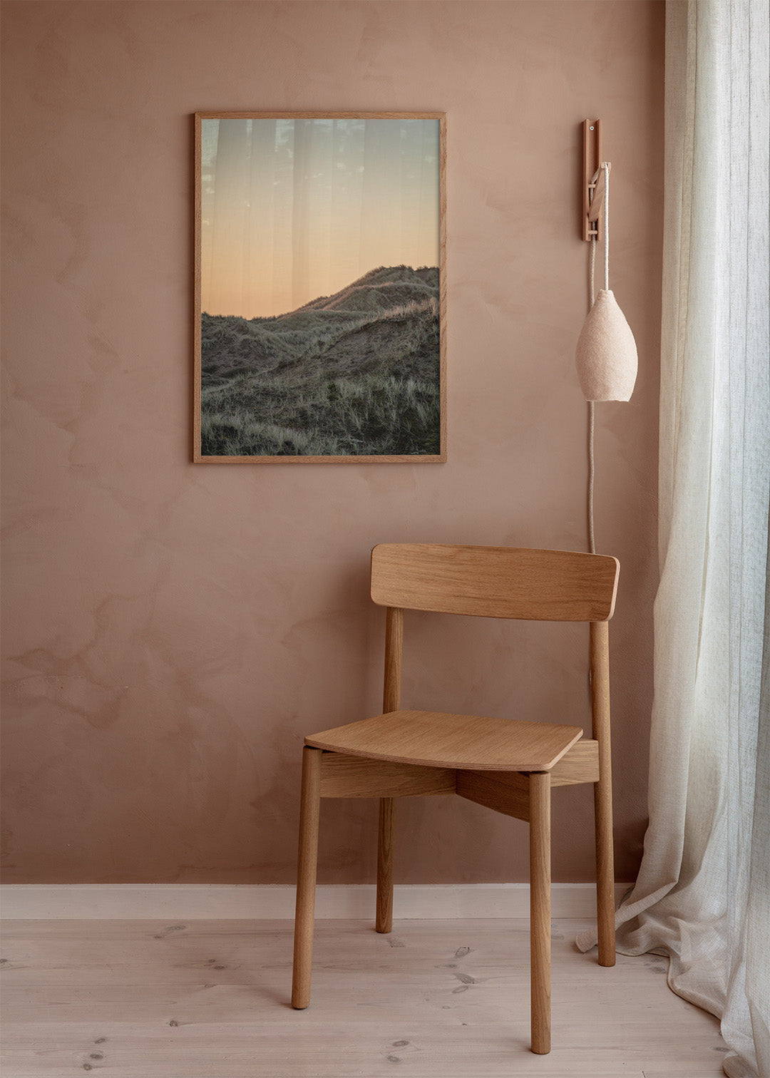 Plakaten passer perfekt ind i skandinavisk indretning, hvor de naturlige farvetoner og enkle linjer fremhæver hjemmets rolige stemning. Den egner sig særligt godt til stuen eller soveværelset.