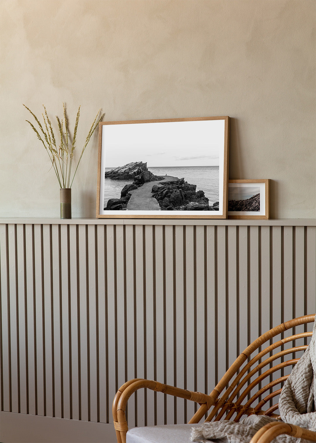 Fang den dramatiske skønhed og kraftfulde kontrast fra Helligdomsklipperne på Bornholm i dit hjem. Bestil din sort-hvide plakat nu.