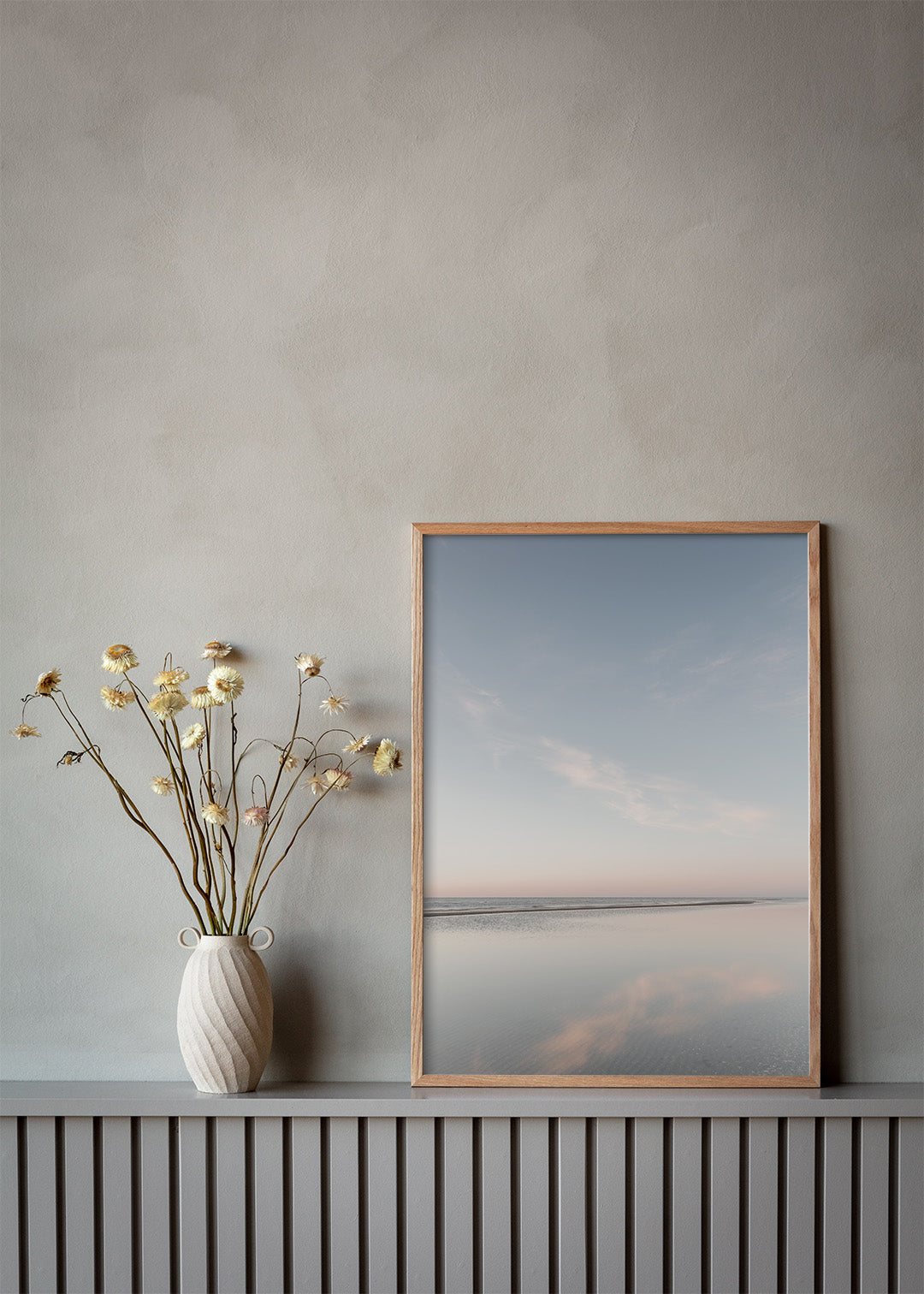 Fotografiet til vores Lyngså Strand plakat er taget på en tidlig sommermorgen, hvor alt ånder fred og ro. Strandskaderne finder snegle og muslinger i det lave vand, og skyerne spejler sig i det spejlblanke hav, mens solen oplyser himlen i smukke blå nuancer. Den enkle komposition og de afbalancerede farver gør plakaten til et ideelt valg, hvis du ønsker at bringe naturens ro og skønhed ind i dit hjem.