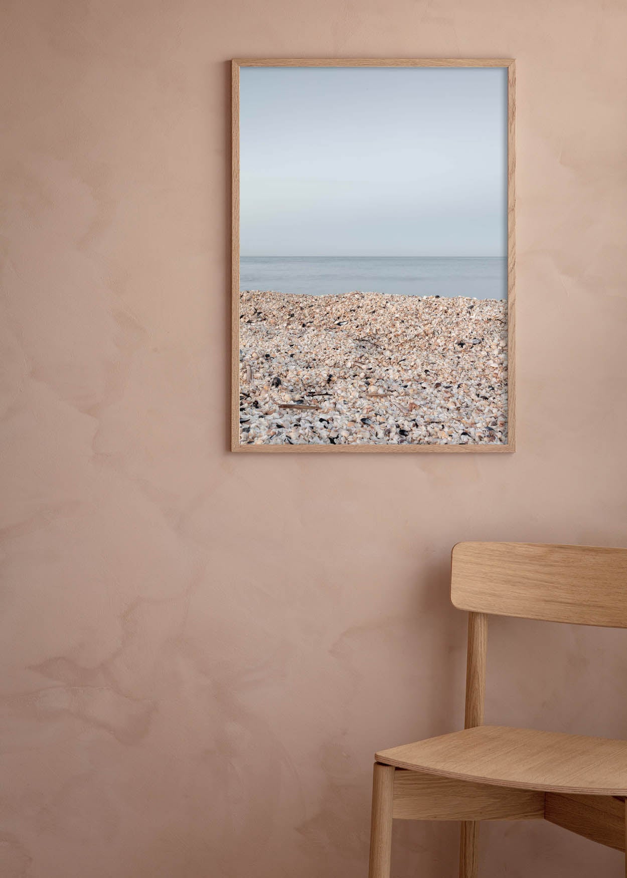 Med sin enkle og rolige komposition passer plakaten godt ind i både moderne og klassiske hjem og kan hænges i alle husets rum, hvor den bringer en følelse af ro og naturens skønhed ind i indretningen. De sarte farver og de grafiske linjer fra strandens tekstur skaber en harmonisk atmosfære, der inspirerer til fordybelse og nærvær.