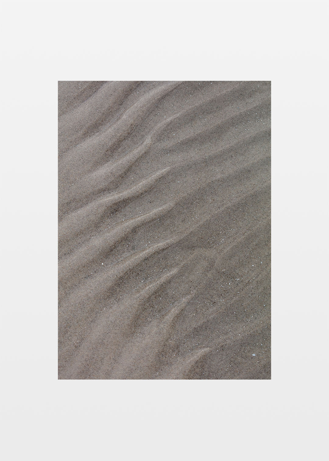 Dette fotografi er taget på vej mod Grenen på en skyet dag, hvor bølgerne i det lave vand danner fine krusninger i sandet. Motivet viser et lille udsnit af naturen, der symboliserer friheden og den forfriskende fornemmelse af en tur til stranden. Man kan næsten fornemme teksturen af sandet og det kolde vand under fødderne, mens man ser på plakaten.