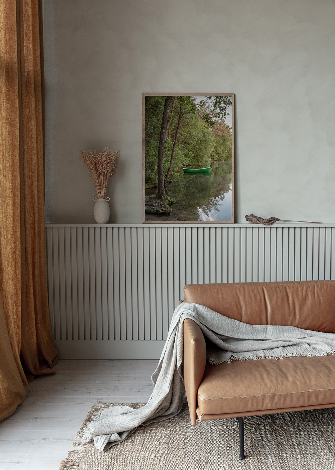 Silkeborgsøerne byder på fantastiske naturoplevelser hele året rundt, uanset om man nyder en gåtur langs bredden eller sidder på en bænk og indfanger de mange detaljer. Plakaten indfanger roen og harmonien ved søen med grønne nuancer, der bringer balance og en følelse af nærvær ind i dit hjem.