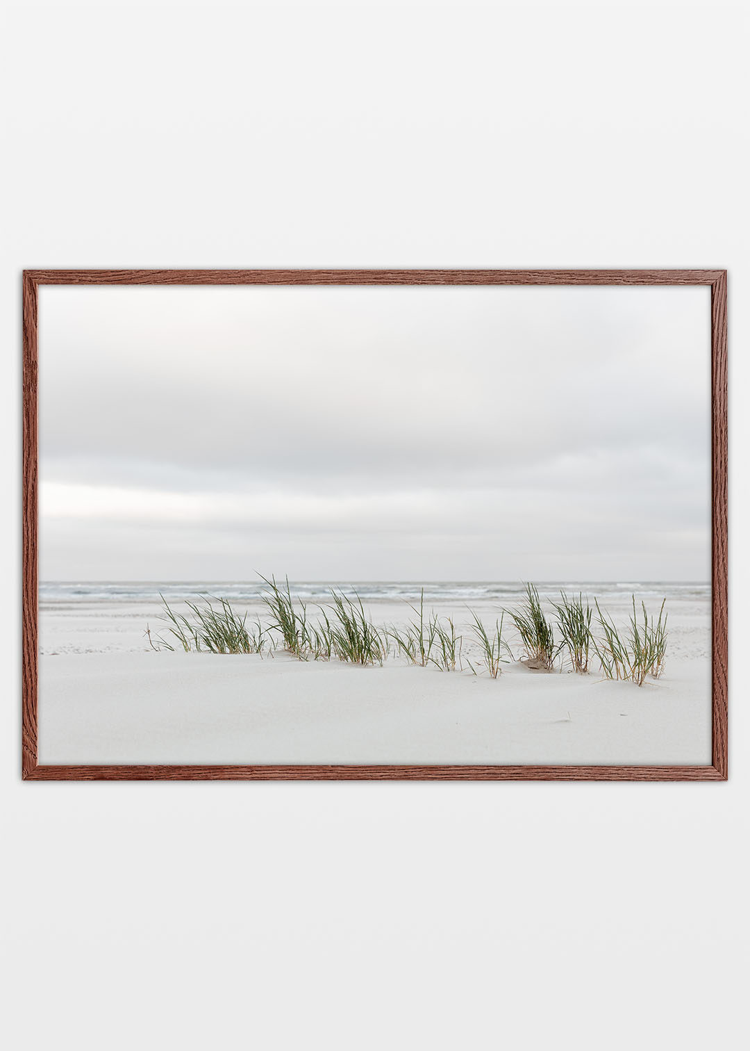 Helt enkel vandret plakat med strand græs fra Henne Strand. Den enkle plakat fanger det lyse sand og de grønne græsstrå, der strækker sig op fra klitterne, og skaber et roligt billede, som bringer en frisk og naturlig stemning ind i sommerhuset eller hjemmets stue. Det enkle fotografi er ideelt til at skabe ro og harmoni i indretningen og skabe en forbindelse til naturen. Hvis du mangler et horisontalt billede, kan denne plakat måske være det perfekte valg.