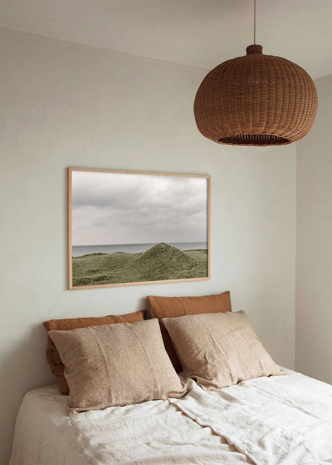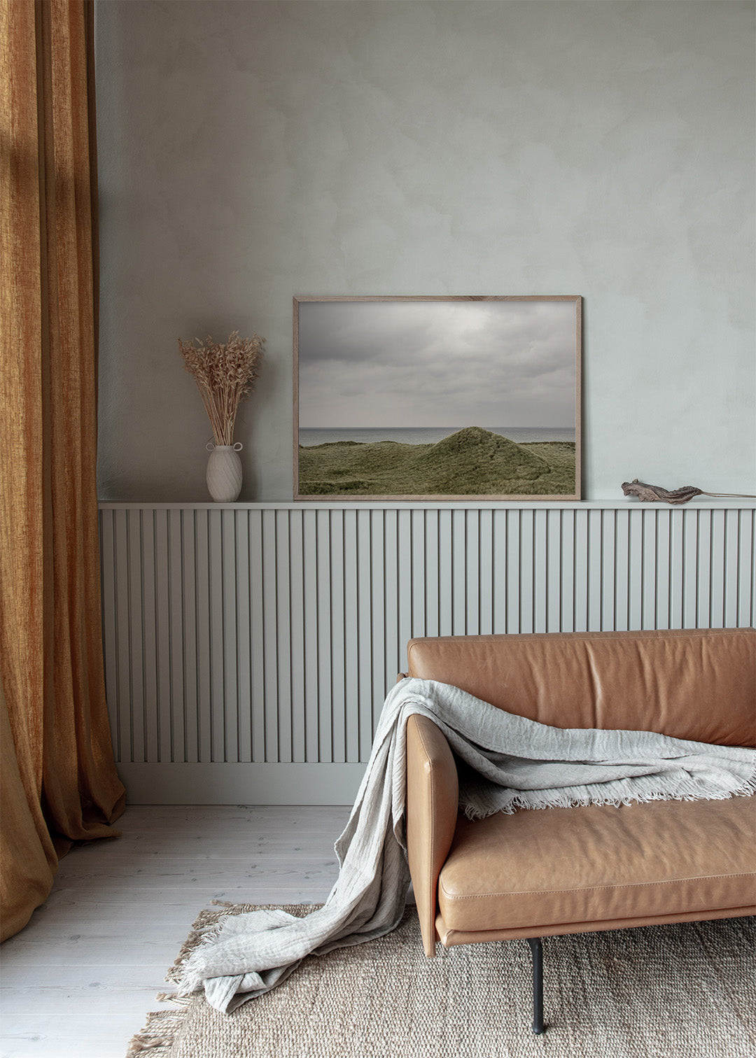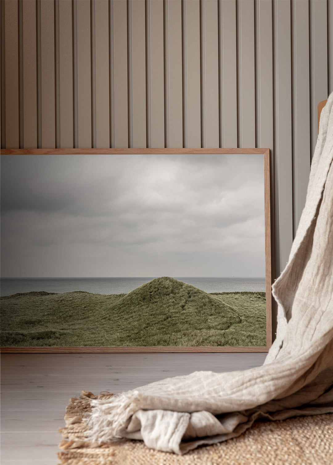 Thy plakat, der indfanger den uberørte skønhed af Nationalpark Thy. Dette enestående naturfotografi er taget i klitterne ved havet, hvor de grønne nuancer i landskabet skaber en følelse af stoflighed og dybde. Klitlandskabet strækker sig mod horisonten og formidler den rå og autentiske stemning, som kendetegner denne del af Danmark. Med denne plakat kan du bringe den friske luft og frihedsfølelsen fra Nationalpark Thy ind i dit hjem og skabe en atmosfære af ro og naturlig skønhed.